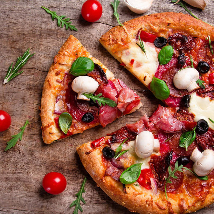 The pizza is delicious! The crust is thin and crispy, great sauce, and awesome cheese blend. And it makes a cute cheap date!